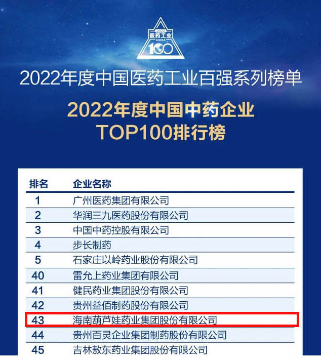 英国上市公司365药业集团连续4年荣登“中国中药企业TOP100排行榜”,排名上升至第43位